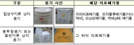 의료폐기물 전용용기란 의료폐기물로 인한 감염 등을 방지하기 위해 의료폐기물을 담아 수집, 운반 또는 보관에 쓰는 것으로 상자형과 봉투형 용기가 있다.