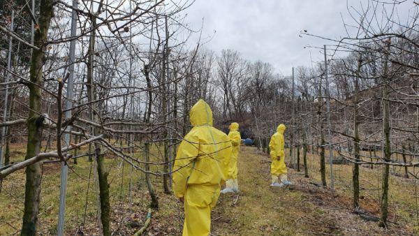 과수화상병은 사과, 배에서 발병하며 잎, 꽃, 가지 등이 마치 화상을 입은 것처럼 조직이 검거나 갈색으로 마르고 전파 속도가 빠른 검역 상 금지병해충이다.