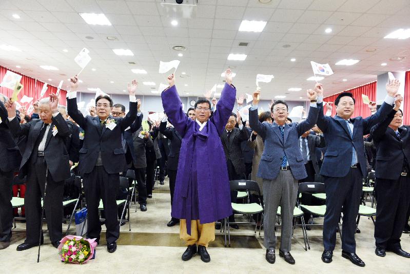 김포시와 김포시3․1운동기념사업회가 주관한 이날 행사에는 광복회원과 유영록 시장, 홍철호, 김두관 국회의원 등 300여 명이 참석했다.