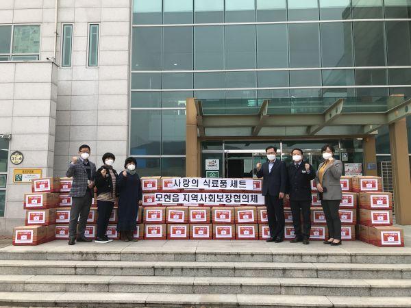 용인시 처인구 모현읍은 지난 9일 지역사회보장협의체가 코로나19 위기로 외부활동이 어려운 관내 저소득층 100가구에 국, 햇반 등 식료품과 손소독제, 마스크 등을 지원했다고 밝혔다.
