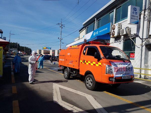 소방본부에 따르면 의용소방대는 지난달부터 도내 터미널, 전통시장, 업무시설 등 다중 밀집장소를 중심으로 방역활동을 벌이고 있다.
