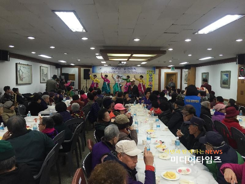 | 주민센터 지하 다목적실에서 관내 어르신 400여명을 초청, ‘어르신 경로 위안잔치행사’ 모습. <ⓒ미디어타임즈> |