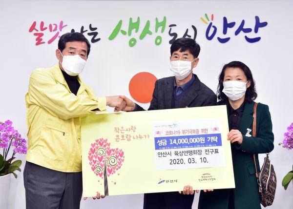 안산시는 전구표 안산시육상연맹회장과 가족으로부터 코로나바이러스감염증-19 위기극복을 위해 사용해 달라며 성금 1천400만원을 기탁 받았다고 11일 밝혔다.