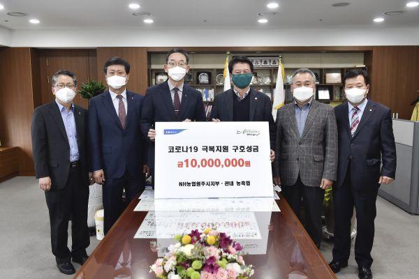 NH농협은행 원주시지부와 관내 농·축협은 지난 10일 코로나19 확산 방지를 위한 구호 성금 1,000만원을 원주시에 전달했다.
