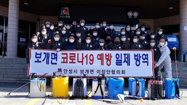 안성시 보개면사무소는 11일 이장협의회와 함께 합동 방역활동을 실시해 코로나19 확산 방지를 위한 노력을 이어가고 있다.