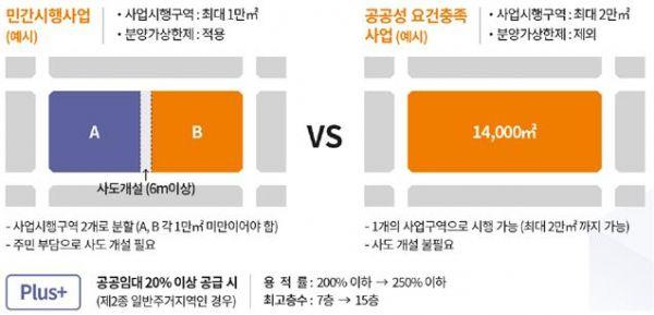 공공성 요건 충족 시 사업면적 확대·분양가상한제 제외 등 혜택 제공