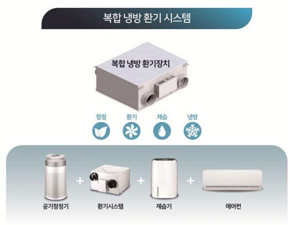 ‘복합 냉방 환기 시스템’은 냉방부터 제습, 환기, 미세먼지 제거까지 4개 기능을 한 번에 수행하는 ‘4 in 1’ 시스템이다.
