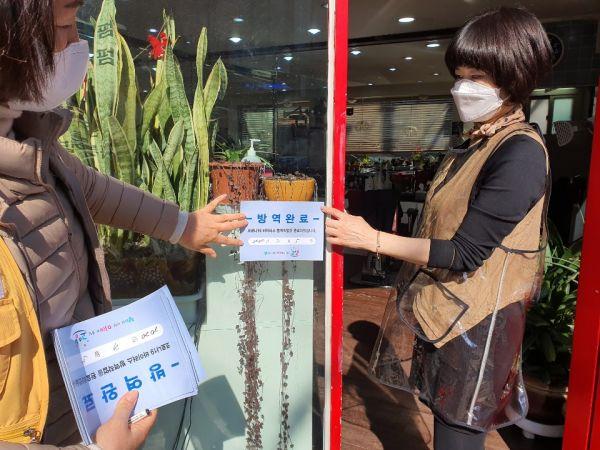 고양시 덕양구 삼송동 행정복지센터는 코로나19로 인해 관내 상점들의 매출이 줄어듦에 따라, 상인들의 어려움을 덜어주고 소비자들의 감염에 대한 두려움을 완화하고자 방역을 완료한 상점들에게 “방역완료” 안심스티커를 배포하고 있다.