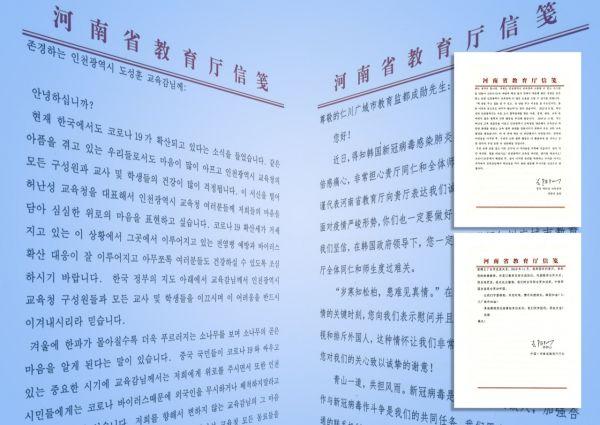 중국 하남성교육청 정방산 교육청장은 “중국 국민들이 코로나19와 싸우고 있는 중요한 시기에 도성훈 교육감님의 서한문이 큰 위로와 감동을 줬다”며 감사의 뜻을 편지로 전해왔다.