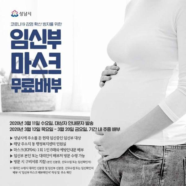 성남시에 주소를 둔 임신부 2,825명을 대상으로 1회에 한해 1인당 5개씩 마스크를 지급한다.