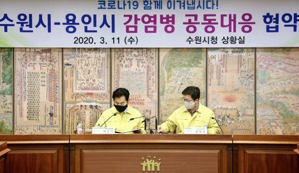 용인시는 11일 수원시와 코로나19 위기 극복을 위해 감염병에 공동대응하는 내용의 업무협약을 체결했다.