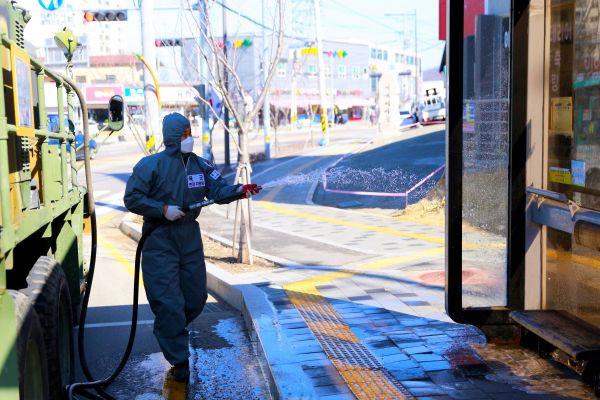 남양주시 오남읍사무소는 코로나19 확산방지를 위해 관·군 합동으로 불특정 다수가 이용하는 버스정류소에 대한 방역 활동을 실시했다.
