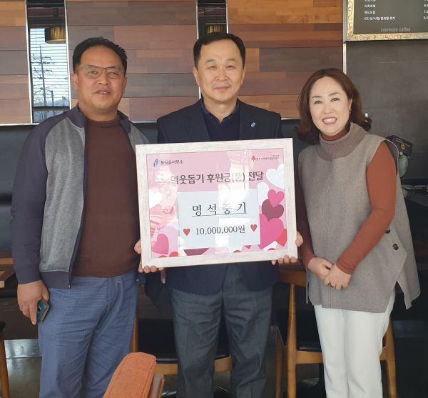 용인시 처인구 포곡읍은 11일 관내 명석중기가 코로나19 위기로 생계에 어려움을 겪고 있는 관내 저소득층 이웃을 위해 써달라며 성금 1000만원을 기탁했다고 밝혔다.