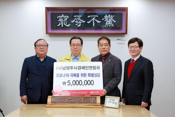 남양주시경제인연합회는 11일 시장 집무실에서 코로나19로 어려움을 겪고 있는 관내 취약계층을 지원하기 위한 후원금 500만원을 경기사회복지공동모금회에 전달했다.