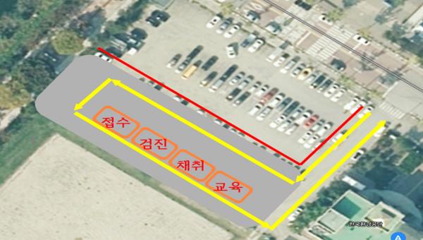검진 순서는 사전전화 상담 통한 기초역학조사 유증상자는 진료 예약 예약일 차안에서 본인 확인 발열 체크 및 검체 채취 차량소독 순으로 진행된다.