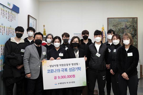 성남시청 직장운동부 빙상팀이 ‘코로나19’ 극복에 힘을 보태고 싶다며 성금 900만원을 지난 11일 성남시에 기탁했다.