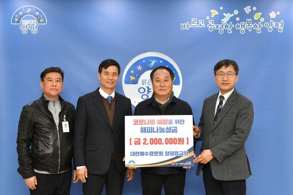 양평읍교회 심재학 목사는 “지역사회에 어려움이 있을 때 종교에서 먼저 나눔을 실천해야 된다고 생각한다”며 “우리가 기탁하는 성금이 코로나19 예방에 도움이 되었으면 좋겠다”고 소감을 전했다.