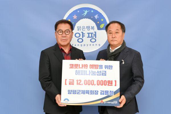 지난 9일 양평군체육회 김용철 회장은 양평군 내 질병에 취약한 저소득층의 코로나19 예방을 위해 1천200만원을 기탁했다.