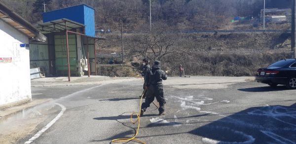 면에서는 방역에 필요한 방역물품과 소독약을 제공했으며 새마을지도자 12명과 강천면 직원이 6개 조로 나뉘어 강천면 전역을 다니며 버스승강장, 농협, 우체국, 마을회관, 식당 등에 대해 소독 작업을 진행했다.