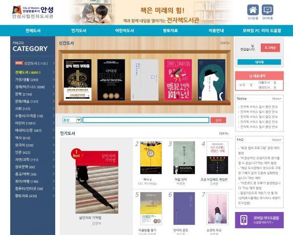 안성시 전자도서관은 전자책 8095종, 오디오북 1815종 등 9910종의 도서 서비스를 제공하고 있으며 시요일 서비스를 통해 35000편의 시도 감상할 수 있다.