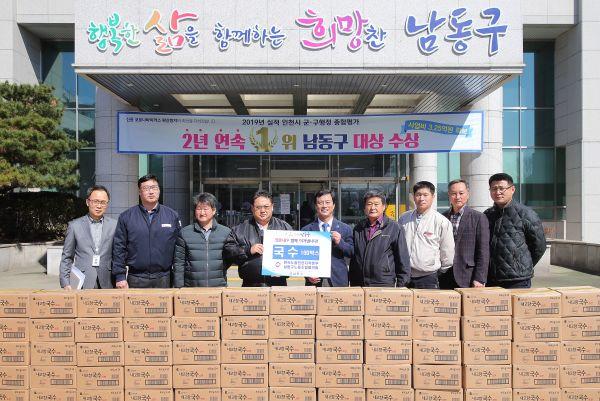 남동구는 지난 11일 한국노총인천지역본부 남동구노동조합협의회로부터 코로나19로 인해 무료급식 시설을 이용하지 못하는 저소득층을 위해 샘표국수 100세트를 전달받았다.