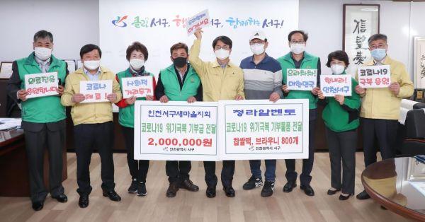 인천서구새마을지회와 청라 알벤토가 코로나19를 함께 이겨내기 위한 기부행렬에 동참했다.
