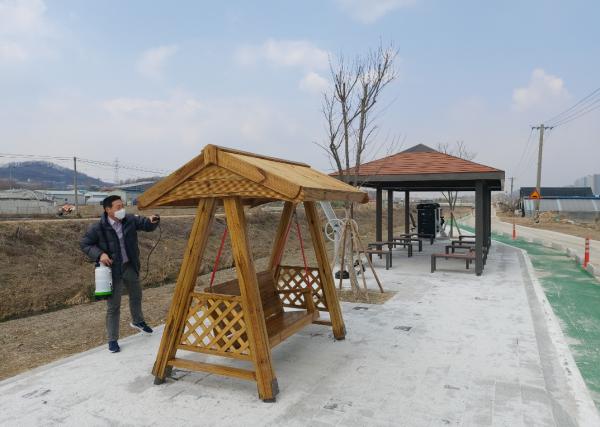 고양시 일산서구는 지난해 조성한 가좌천 산책로 및 쉼터에 바이러스 확산방지와 시민불안감 해소를 위한 분무 방역 소독을 수시로 실시하고 있다고 밝혔다.
