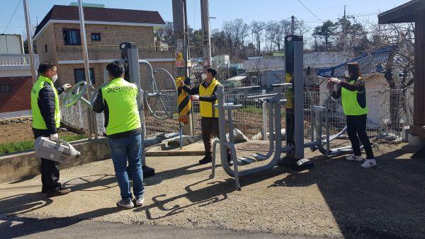평택시 고덕면에서는 지난 11일 행정복지센터와 주민자치위원회가 함께 코로나19 예방 및 확산방지를 위해 마을체육시설과 관내 종교시설을 중심으로 방역소독을 실시했다.