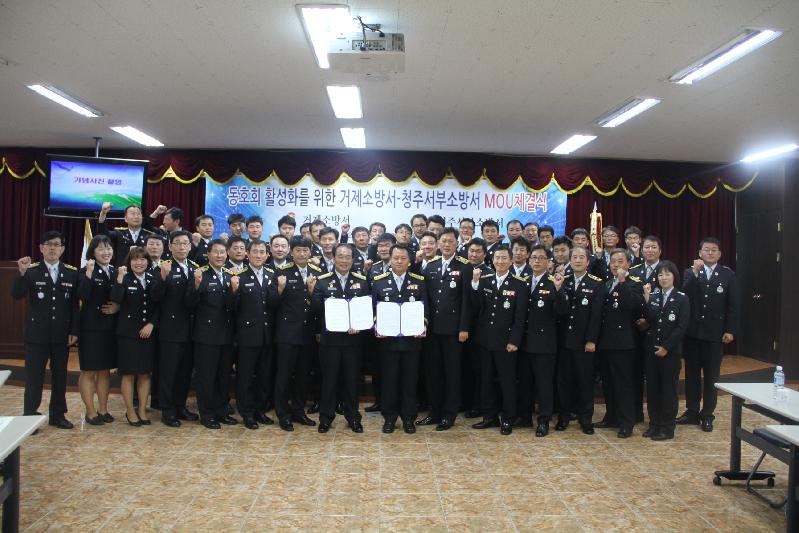 경남 거제소방서(서장 윤종암)와 충북 청주서부소방서(서장 김유종)는 지난 21일 거제소방서 대회의실에서 직원 70여명이 참석한 가운데 상호 공동 발전을 위한 업무협약식을 가졌다.