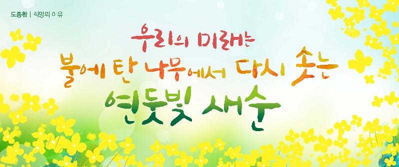 성씨는 “시골에서는 봄에 씨를 뿌리기 전 해충을 없애고, 겨우내 얼어 있던 대지를 깨우려고 논이나 밭을 태운다”면서 “‘불에 탄 나무’는 시련과 고난의 기억이자 ‘연둣빛 새순’이 돋게 하는 거름이 될 수 있다”고 문안의 취지를 설명했다. 이어 “봄에 대한 기대와 희망을 담았다”고 덧붙였다.