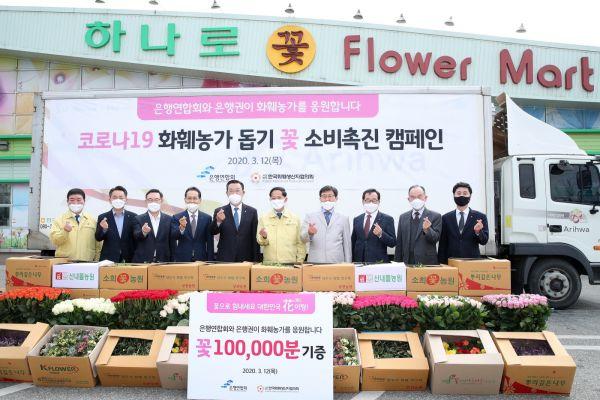 3월 12일 전국 은행연합회는 고양시 화훼농가가 생산한 5천만원 상당의 분화 10만본을 구입해 코로나19로 고생하는 의료진 및 소방서 등에 전달하는 등 꽃 소비 활성화 분위기 확산에 솔선수범 하고 있다.
