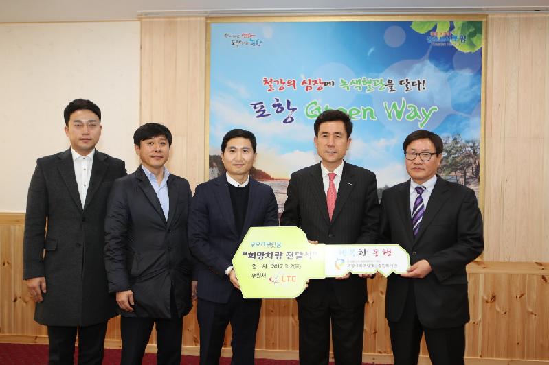 LTC홀딩스(대표 이홍석)은 지난 2일 포항시청 대외협력실에서 포항시북부장애인종합복지관에 1톤 포터 차량을 기증하며 전달식을 가졌다.
