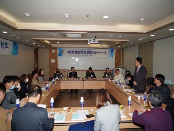 고양시는 지난 11일 고양시 기업애로상담지원센터에서 고양시 기업인단체와 유관기관 관계자들이 참석한 가운데 코로나19로 침체된 지역경제를 살리기 위한 경제 간담회를 개최했다고 전했다.