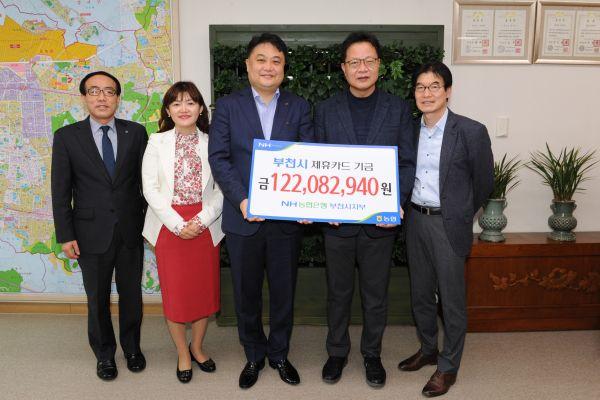 NH농협 부천시지부는 매년 전년도 적립 금액을 부천시에 전달하고 있으며 이 날 전달된 기금은 지난해 부천 통카드, 부천기업카드, 보조금카드 이용실적에 따라 적립된 것이다.