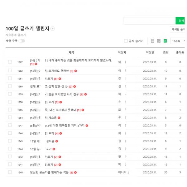 온라인에서 진행되는 ‘내 방 안의 도서관’은 100일 글쓰기 챌린지, 50일 방구석 도서관, 30일 감성한잔 시 필사, 모임에 130여명이 참여해 지난 2월 25일을 시작으로 매일 쉼 없이 이어지고 있다.