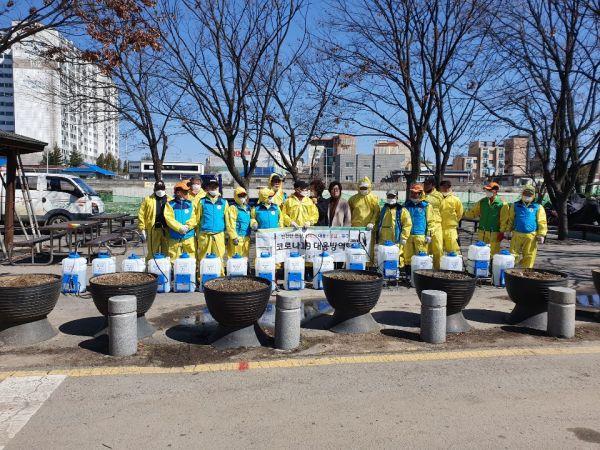 자율방재단은 15명의 대원을 매일 소집해 동력 분무기를 이용한 방역 활동을 실시하고 코로나19 심각 단계 해제 시까지 매일 방역 활동을 실시할 예정이다.