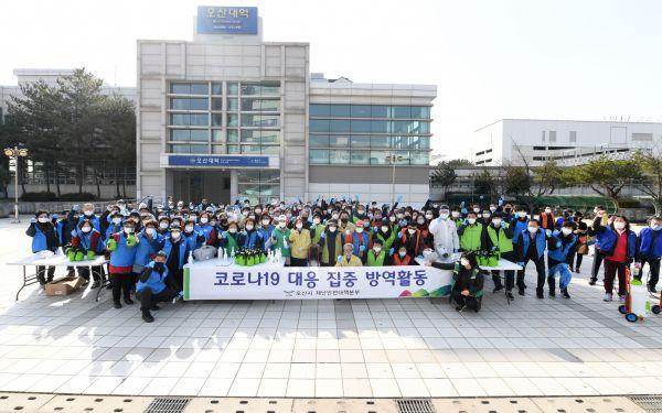 오산시와 자율방재단, 51사단, 지역단체 등 코로나19 민·관·군 합동방역단 200여명이 지난 12일 신장동 일원에서 방역활동을 실시했다.