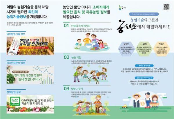 농촌진흥청은 농사로 이외에도 농업인교육 토양정보농업기상정보 농약정보 병해충예찰정보 축산농장관리 등을 통해 다양한 농업기술정보를 제공하고 있다.