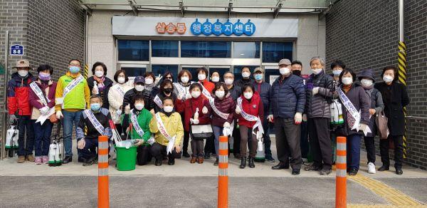 고양시 덕양구 삼송동에서는, 지난 목요일 고양시 일제 방역의 날에 삼송동 직능단체장들과, 통장들, 상인회원들이 모여 각각 창릉천변, 삼송역사, 상점가 방역에 나섰다.