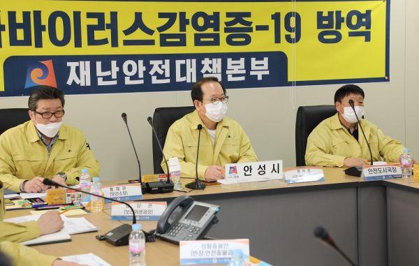 안성시가 시장 권한대행 이춘구 부시장 이하 재난대책본부 관계자 20여명이 참석한 가운데, 안성시청 3층 재난상황실에서 코로나19 지역 사회 차단 관련 비상대책회의를 가졌다.
