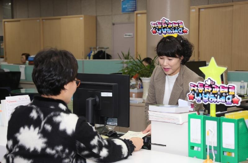 [미디어 타임즈 = 최귀복 기자] 통영시(시장 김동진)가 자동차 체납과태료 징수를 위해 민원인에게 웃음을 선사하는 깜짝! 이벤트를 실시해 눈길을 끌고 있다. 통영시 세무과에서는 지난 2일부터 '자동차 과태료 납부하세요'라는 반짝이는 LED 별봉을 제작·설치하고 담당직원이 LED 머리띠를 착용하고 과태료 납부 안내·유도하고 있다. 이번 이벤트는 자동차 체납과태료 징수를 위해 부동산과 예금압류조치 등 다양한 방법으로 납부를 유도하고 있지만 체납액이 쉽게 줄어들지 않아 성실납부 분위기를 조성하고자 마련한 방안이다. 이벤트는 실제로 효과를 보이고 있다. 화가나 방문한 민원인이 안내하는 담당직원을 보고 실소를 터트리는 등 편안하고 유쾌한 분위기가 연출 되고 있다. 통영시 관계자는 '민원인들의 시선이 많이 부담스럽고 창피하기는 하지만 미소로 응대 하다 보니 오히려 민원인들도 편하게 생각하시는 것 같다'며 '앞으로도 스스로가 홍보요원이라는 생각으로 최선을 다하겠다'고 말했다.