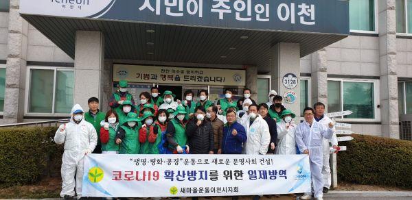 신둔면 새마을지도자협의회 및 새마을부녀협의회는 13일 코로나19 확산 차단을 위해 회원 60여명이 모인 가운데 신둔면 공공청사 및 각 마을 경로당 등 주요시설과 주요 마을길을 방역하고 신둔면 3번 국도 등 주요 도로변과 전철역 등 공공이용시설에 대한 정화활동을 실시했다.