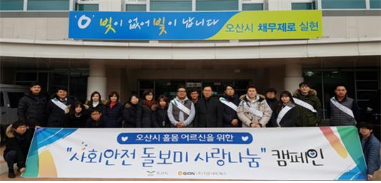 오산시 로라(LoRaWAN) 무선 자가망 인프라 및 사회안전 돌보미 서비스를 구축한 ㈜지온네트웍스는 2월 13일부터 5일간 오산시 및 주민센터 사회복지 담당자들과 함께 서비스 활성화와 조기 정착을 위한 “사회안전 돌보미 사랑나눔” 캠페인을 실시했다.