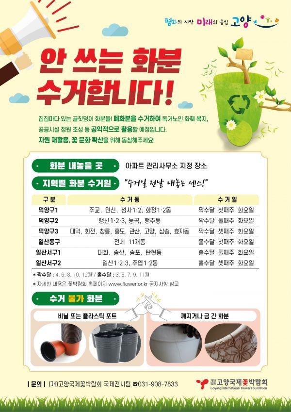 화분 수거는 4월부터 12월까지 덕양구는 짝수 월, 일산동·서구는 홀수 월에 각 지역별로 지정된 일자에 진행된다.