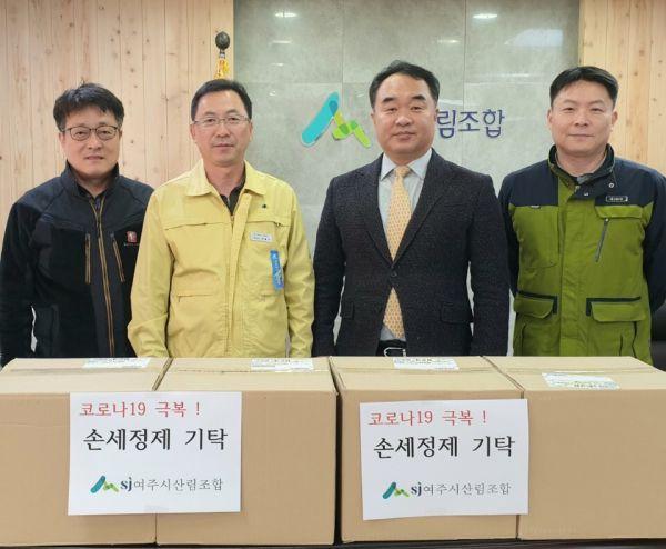 여주시 산림조합은 지난 13일 금요일 코로나19로 어려움을 겪고 있는 시민들을 위해 손소독제 100개를 기탁했다.