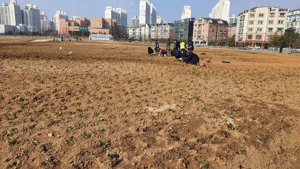 인천 계양구는 서운동 106-1번지 일원 축구경기장 10배 크기의 대규모 초화단지에 유채 모종작업이 한창이다.
