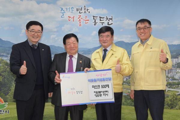 사)동두천시 자원봉사센터 양순종 이사는 16일 오전 코로나19 확산 방지를 위해 예방용 마스크 500장을 동두천시에 기탁했다.