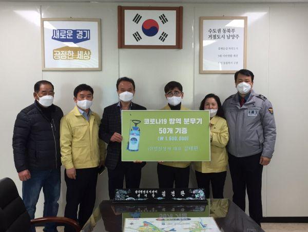 남양주시 별내동에 소재한 ㈜명진상사는 지난 12일 별내행정복지센터에 방역분무기 50개를 기증했다.