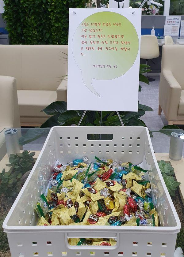 여권발급 민원실을 찾은 한 민원인은 “코로나19로 인해 요즘 너무 삭막하고 서로 의심하며 경계하는 분위기였는데 이곳에 이렇게 사탕을 보니 잠깐이라도 마음이 훈훈하다”고 밝혔다.