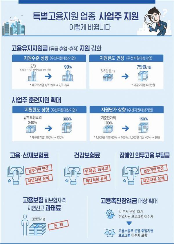 먼저, 사업주의 고용유지조치 등에 대한 지원 수준이 높아진다.